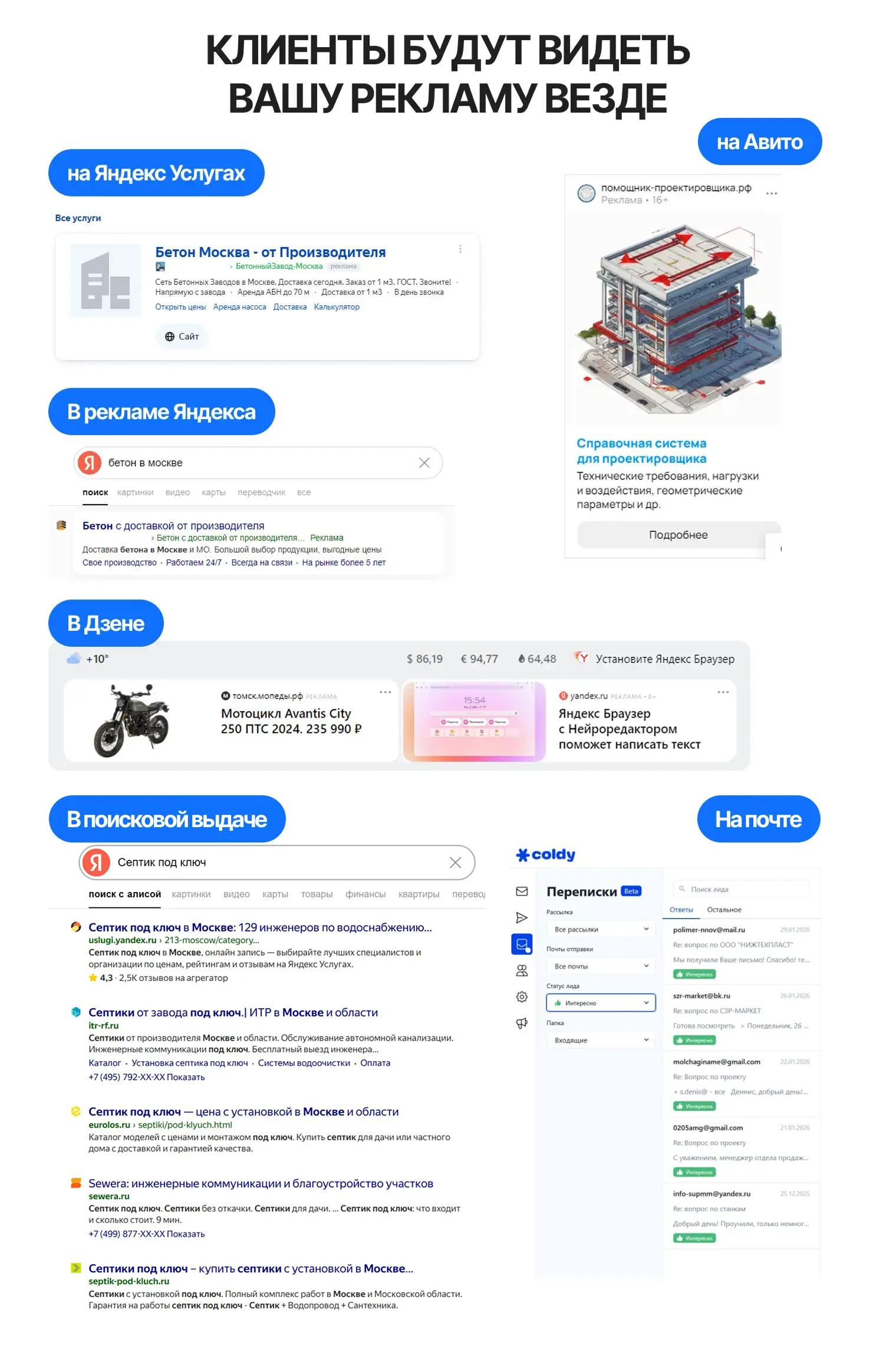 Подбираем микс под вашу нишу и цикл сделки — чтобы заявки были целевыми и измеримыми.